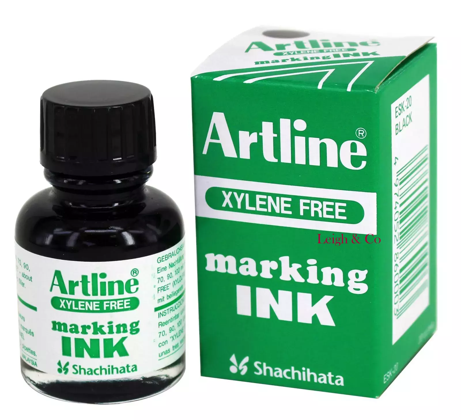 20ml bottle of refill ink for Artline 30, 50, 70, 90, 100, 107R, 109R, 120, 130, 700, 710 markers. also available in blue or red ink.