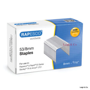 Designed for use with tackers, these 53/8mm high-quality steel wire staples have a tough galvanised finish and chisel point for ease of use. This bulk pack contains 5,000 53/8mm staples. Also fit Stanley, Arrow JT21 Machines.